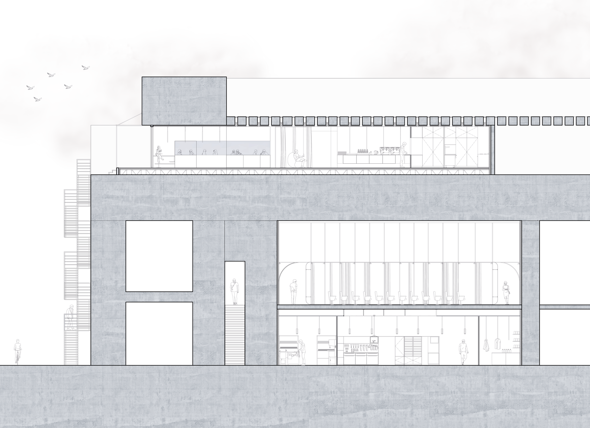 Ce projet d’architecture d’intérieur implanté dans le Keroman 3 à Lorient met en lumière la volonté de maintenir le développement des activités nautiques dans la ville mais aussi de susciter l’intérêt du grand public pour le nautisme à travers une école de voile et ses ateliers de réparation. Toujours avec la volonté de perpétuer le développement des métiers de la mer mais aussi de sensibiliser le public à l’impact des activités nautiques, les ateliers proposés par des professionnels concrétisent une approche technique et participative de la rénovation, la réparation et l’apprentissage de la vie en mer.